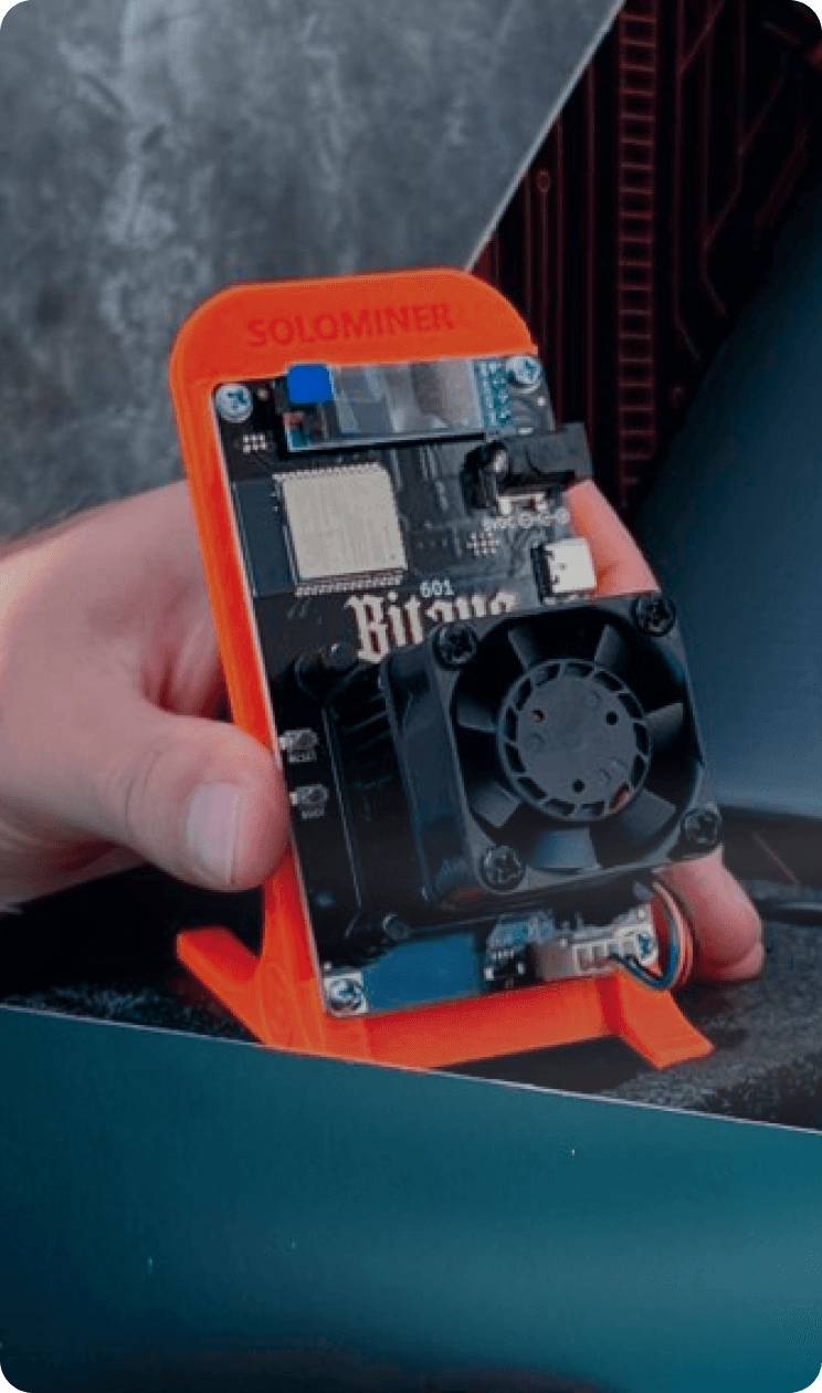 SoloMiner is designed differently: compact, low-power, and able to run continuously at home for around $2 per month in electricity.